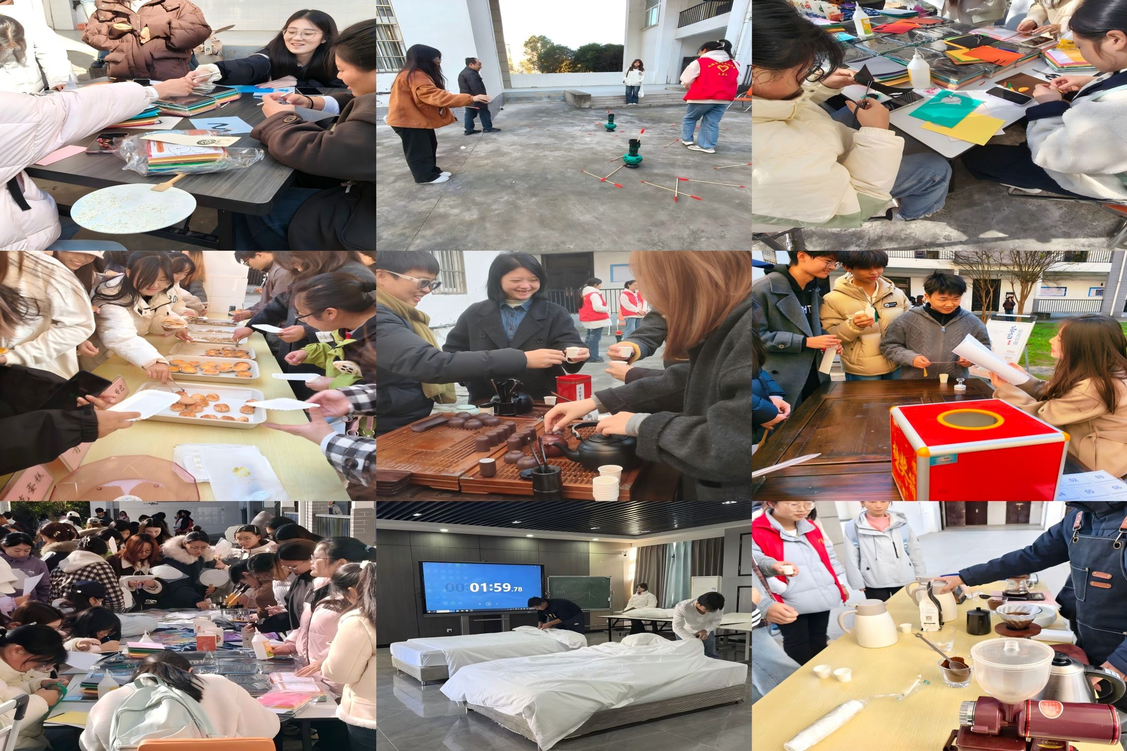 活动搭建了三大专业实践展示平台,构建起完整的沉浸式实训体系。酒店管理展区系统展示餐饮服务与客房管理的全流程教学环节,涵盖特色饮品调制、精品咖啡冲泡与西点品鉴等实训内容,并通过铺床技能竞赛全面锻炼学生的实操能力。旅游管理展区将茶艺展示与传统礼仪教学有机融合,结合专业知识竞答,促进理论教学与文化传承的协同并进。文化产业管理展区集中展出学生自主创作的系列文创作品,配合多元艺术表现形式,充分体现文化创意与审美教育的跨学科融合成果。