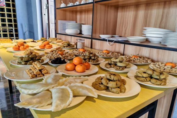 现场活动亮点纷呈,吸引全校数百名师生踊跃参与。技艺研学、文化讲解、互动品鉴等环节环环相扣,营造出浓厚的沉浸式文化体验氛围。黄沛老师以九华黄精、润思祁门红茶等池州特色名产为例,系统讲述其历史渊源、制作工艺与文化内涵,带领师生穿梭于地方文化的时空脉络之中。品鉴体验区同样精彩不断,除经典地方特产外,学院烘焙兴趣小组自主研制的“红茶桃酥”“花生酥”等创意茶点,将本土风味与现代美食巧妙融合,令师生在舌尖享受中深切感受到池州文化的独特魅力。