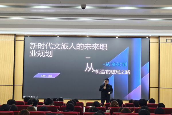 10月30日,旅游与历史文化学院依托省级现代文旅产业学院建设平台,特邀行业导师、安徽远行旅游开发有限公司总经理汪涛,面向2025级旅游管理专业新生和学生支部、教工支部的党员师生代表,开展《新时代文旅人的未来职业规划》专题报告会,报告会由旅游与历史文化学院院长程晓丽主持。